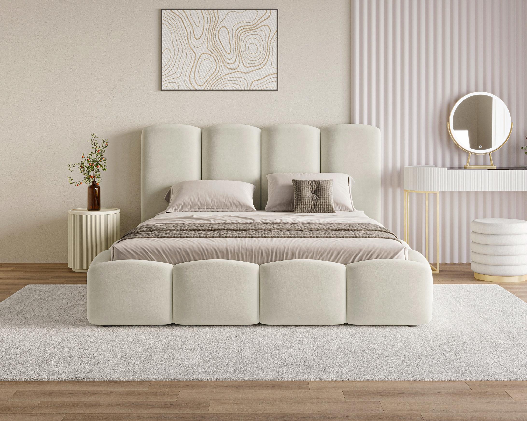 Das Bett Puffy ist eine moderne Interpretation von Komfort und Stil, die jedem Schlafzimmer eine besondere Atmosphäre verleiht. Seine runde, abgerundete Form, inspiriert von der Weichheit von Kissen, lässt das Möbelstück leicht und gemütlich wirken und gleichzeitig besonders modern erscheinen. Mit einem hochwertigen Stoff gepolstert, bietet das Bett Langlebigkeit und hohen Nutzungskomfort über viele Jahre.