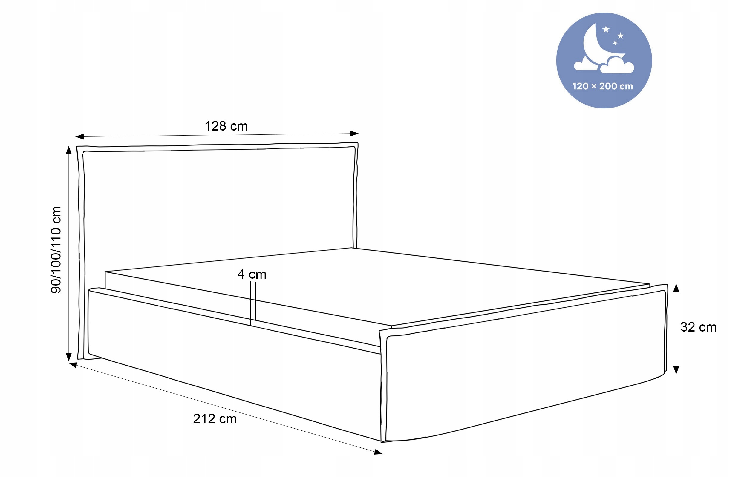Dank der praktischen Gleitfüße wirkt das Bett leicht und modern. Ein zusätzlicher Vorteil ist der geräumige Bettkasten, der viel Platz zur Aufbewahrung von Bettdecken, Kissen und anderen Textilien bietet.