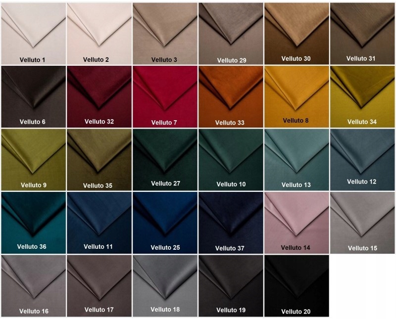 Das Modell ist mit luxuriösen Stoffen Dream Velvet und Velutto bezogen, die sich durch ihre schöne Struktur, hohe Strapazierfähigkeit und samtige Oberfläche auszeichnen. Der stabile Holzlattenrost sowie die solide Konstruktion garantieren hohen Komfort und eine lange Lebensdauer.
